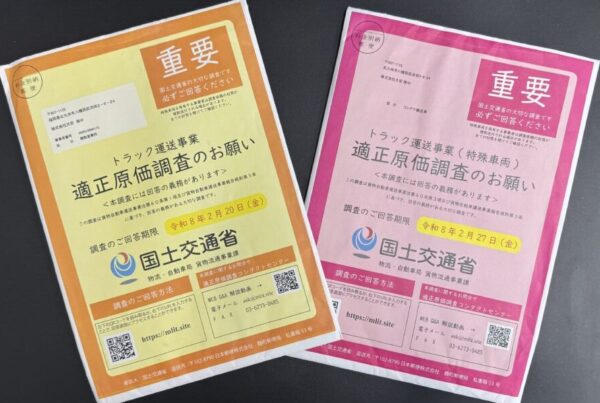 このたび 国土交通省 から 「適性原価調査のお願い」が届きました。この調査は、貨物自動車運送事業法 第60条第1項および貨物自動車運送事業報告規則 第3条に基づくもの... -