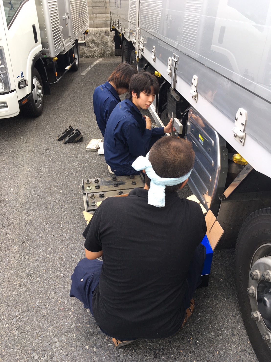先日、長距離帰りの乗務員さんが車両整備の一環で、バッテリー交換をしていました。事務所内で、事務仕事に没頭していた、2年目と1年目の新入社員に声をかけ、交換を... -