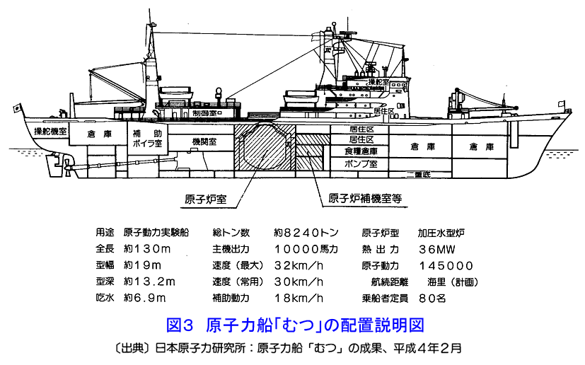 日本初の≪原子力船むつ≫は、1963年(S38年)8月、日本原子力船開発事業団が設立され、同じ年の10月に、内閣総理大臣と運輸大臣が、原子力船開発基本計画を決定。その後、1968年(S43年)石川島播磨重工業が船体部分を起工。その間に政府は、青森県むつ市の下北埠頭(大湊港)を原子力船の母港とすることに決め、地元に協力要請をした。これに対し地元では原子力船母港設置反対市民会議という組織が出来て、反対運動を開始した。しかし、当時の青森県知事や、むつ市市長は、母港設置に同意する回答を政府に提出した。この原子力問題に関する市民反対、行政は賛成のパターンは長く続くことになる。