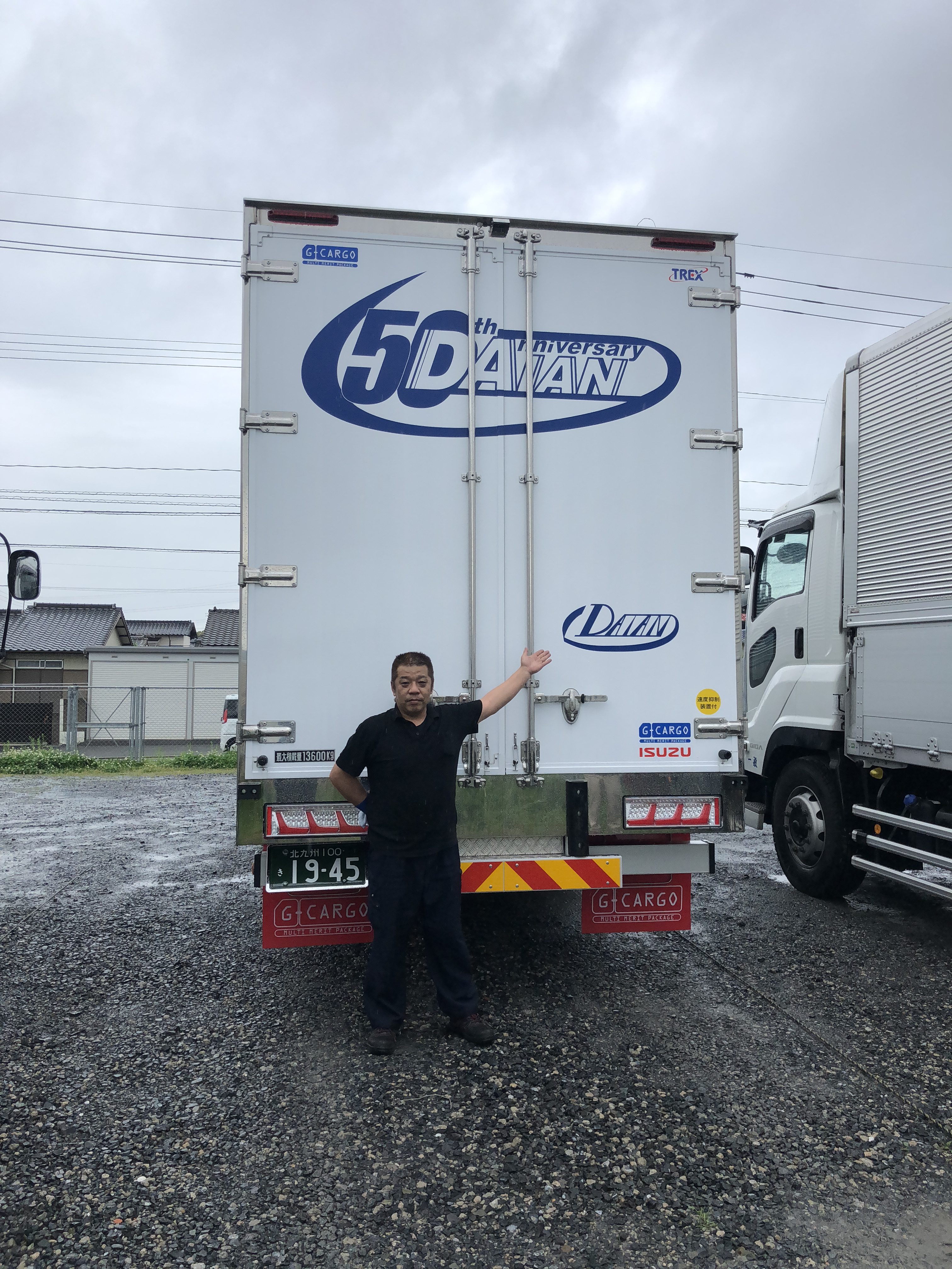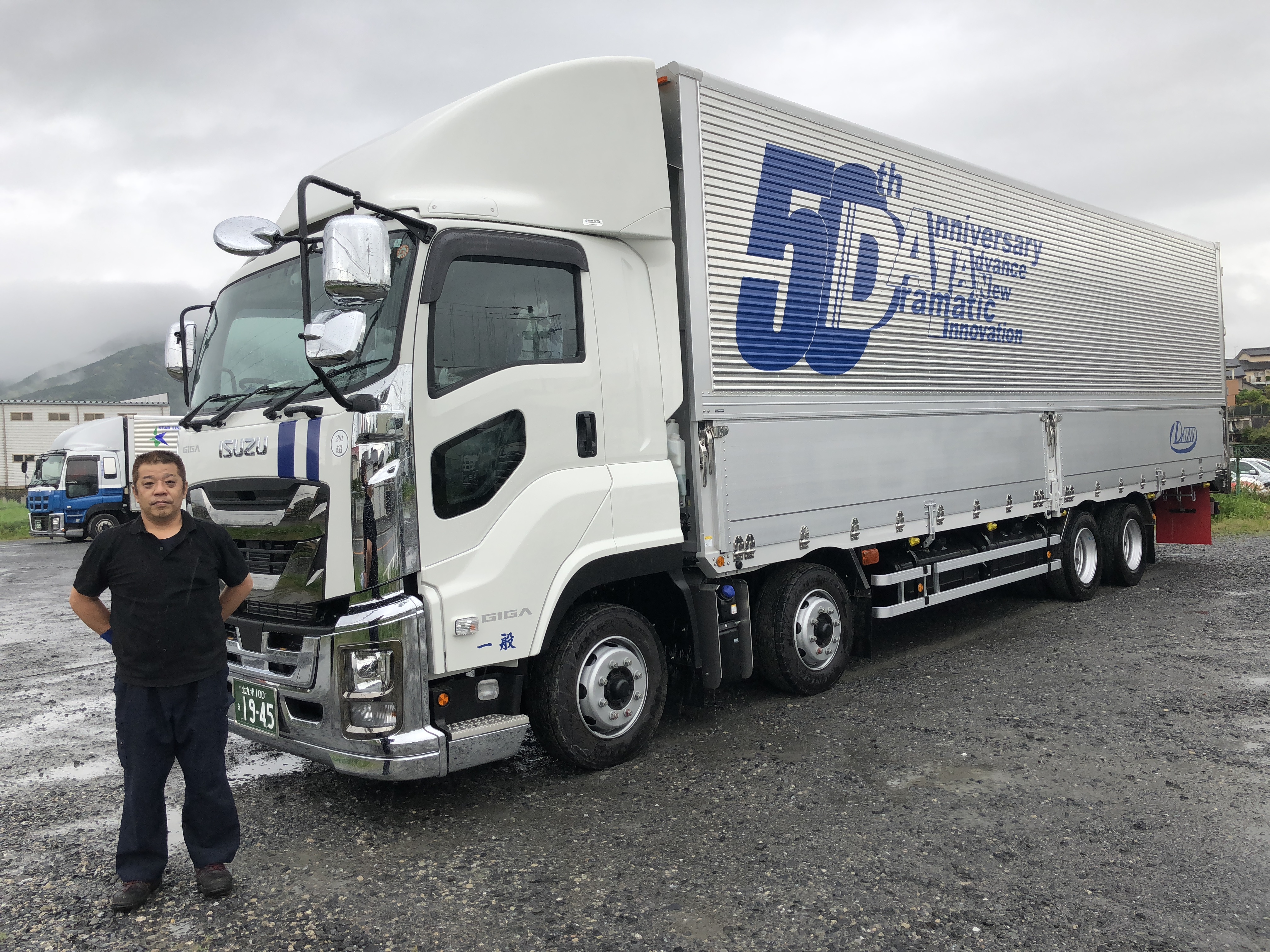 今年50周年を迎えるに当たり、以前よりアニバーサリートラックを作りたい!という強い想いから、準備をすすめ、様々な意見やアドバイスを受けながら、デザインの作成を独自で考え、この度、5月の初旬に、待ちに待った、50周年記念トラックが納車されました!