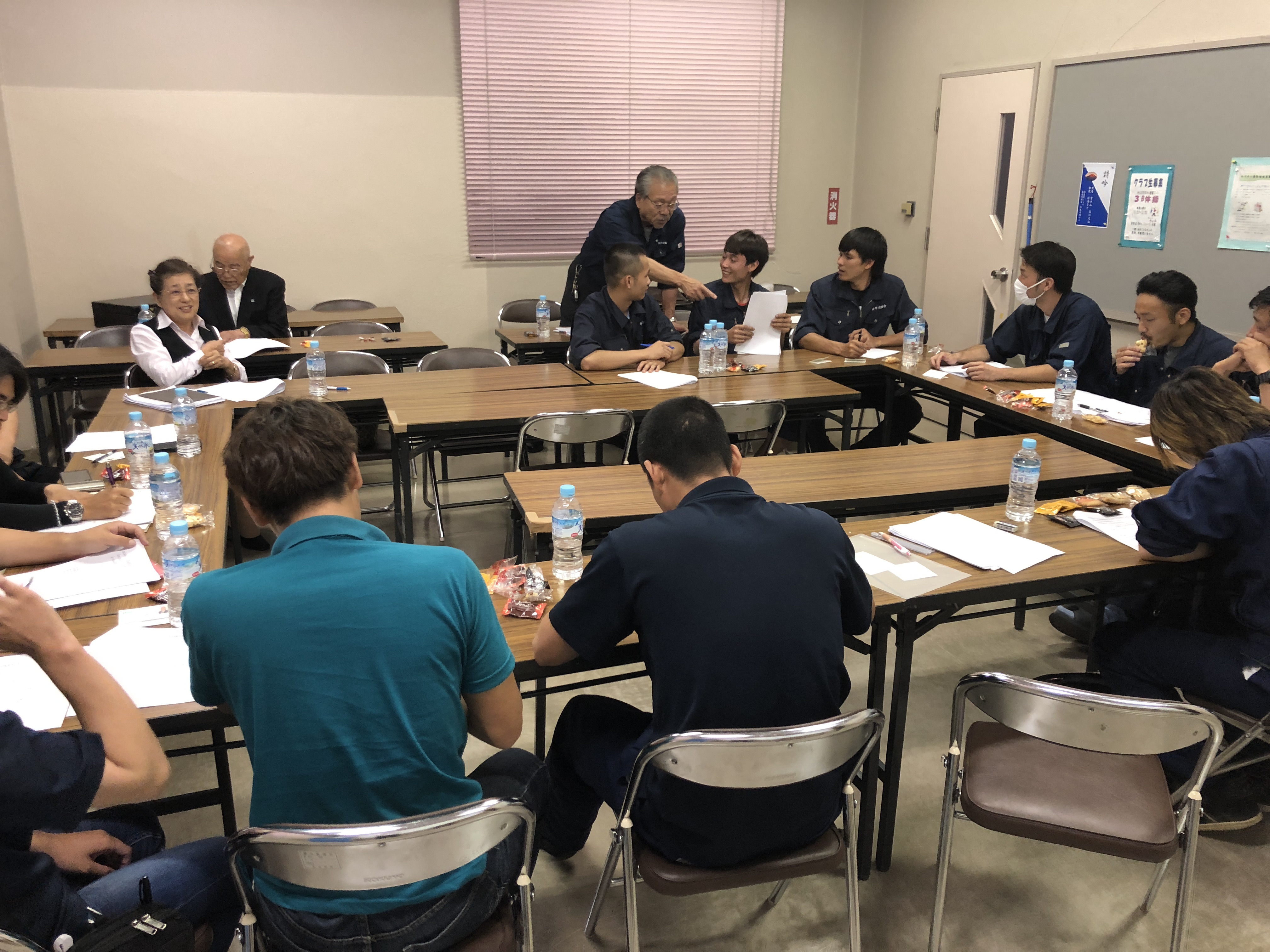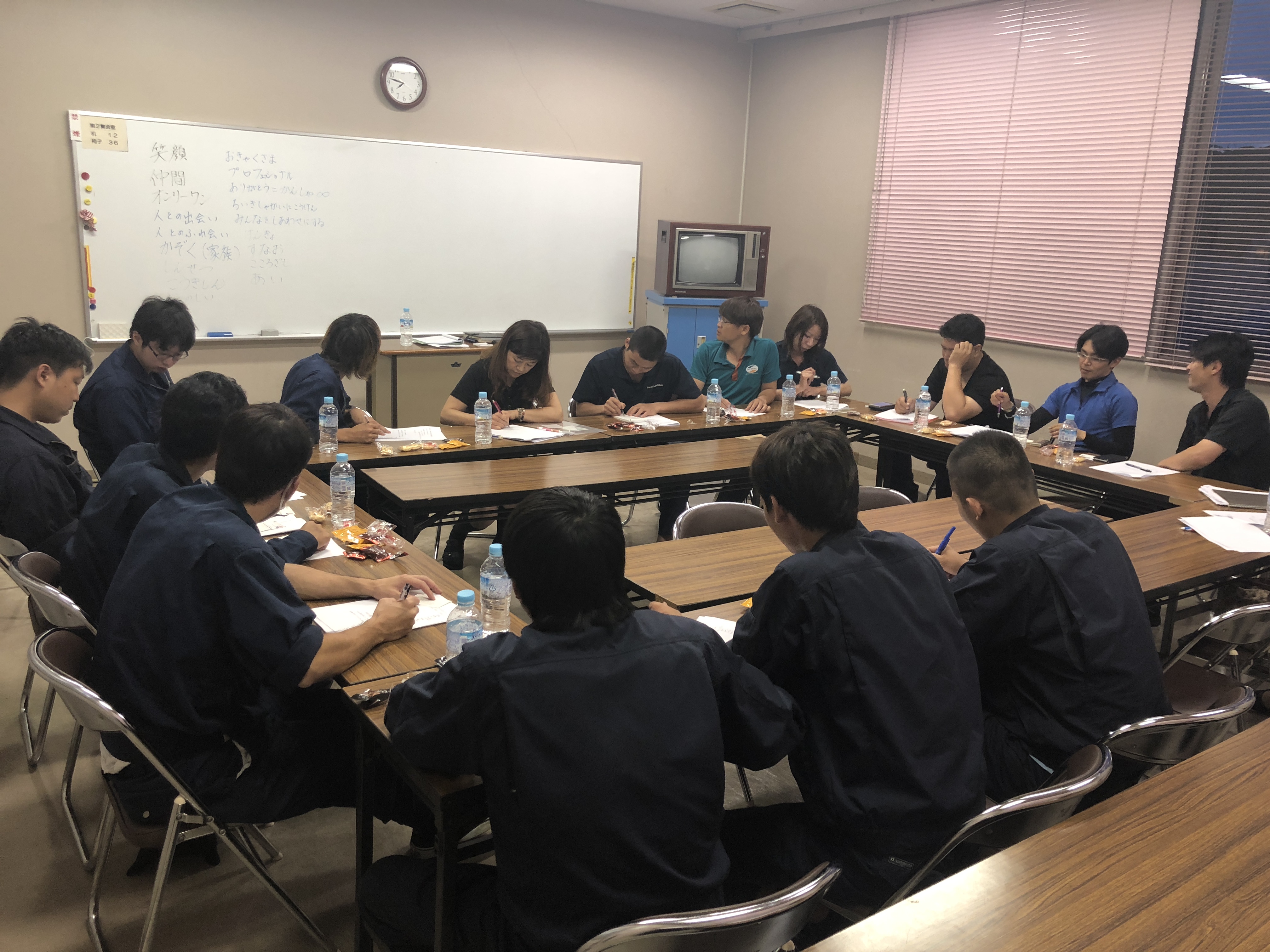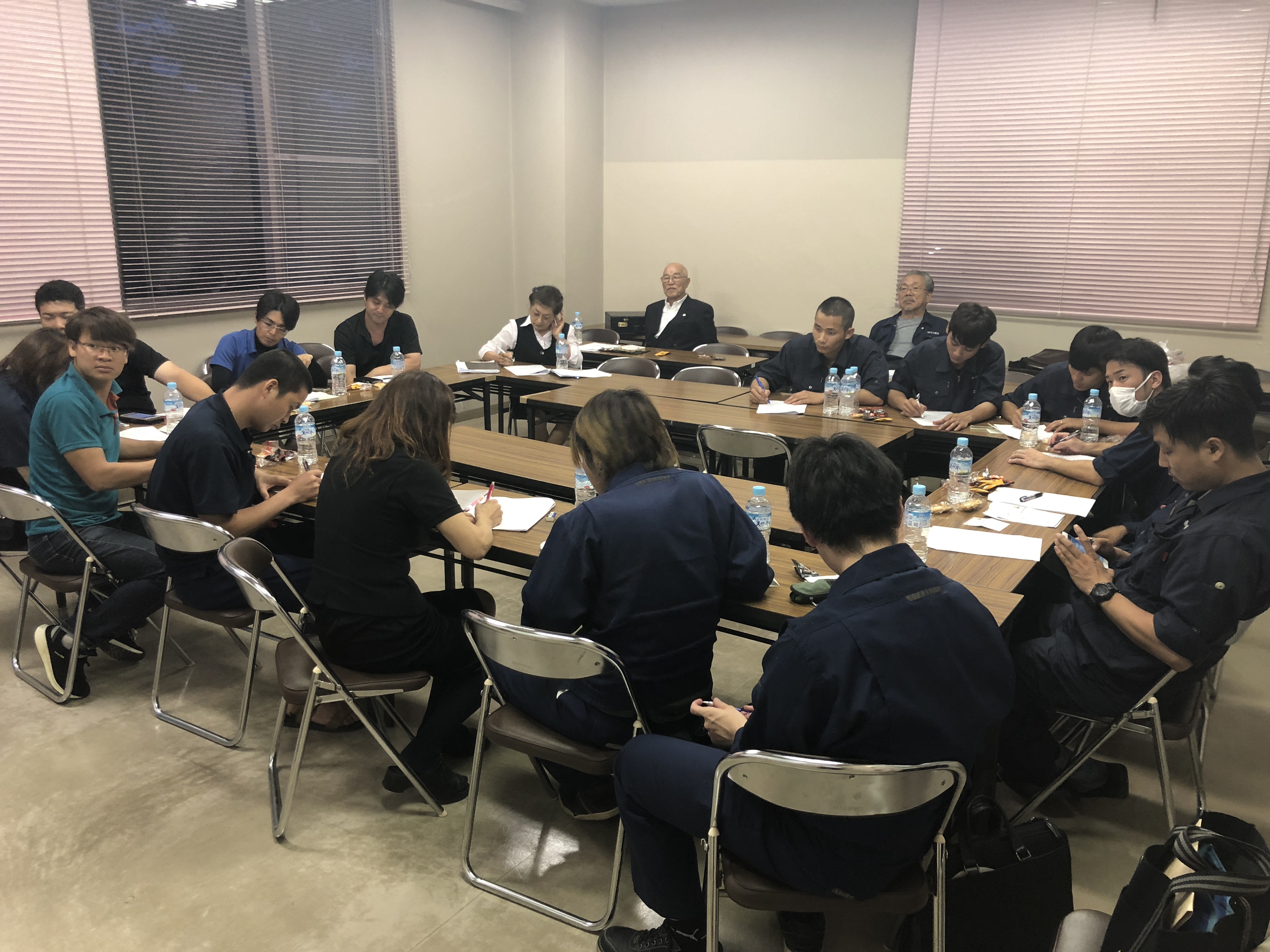 平成30年6月26日の業務終了後、大安の社員とグループ会社である平川商会の社員が集まって、D&H強靭塾を開催し、「目的」「目標」「経営理念」について学びました。