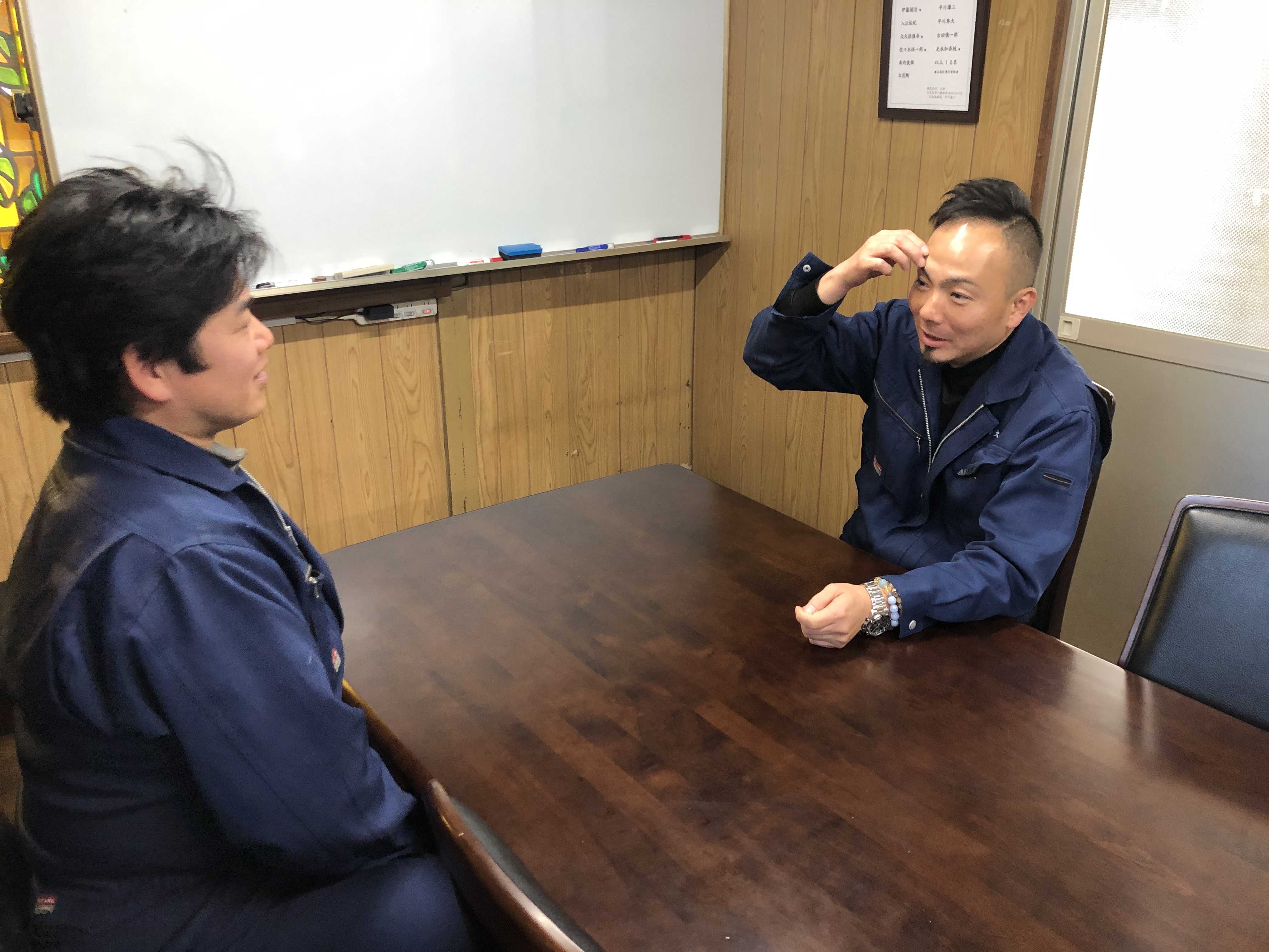 弊社では、各拠点長が中心となり、積極的に現場の社員の方々とのコミュニケーションを密にとる活動を行っています。伊藤部長も夕方皆が返ってくると、自虐ネタを織り込みながら、積極的に話しかけます。
