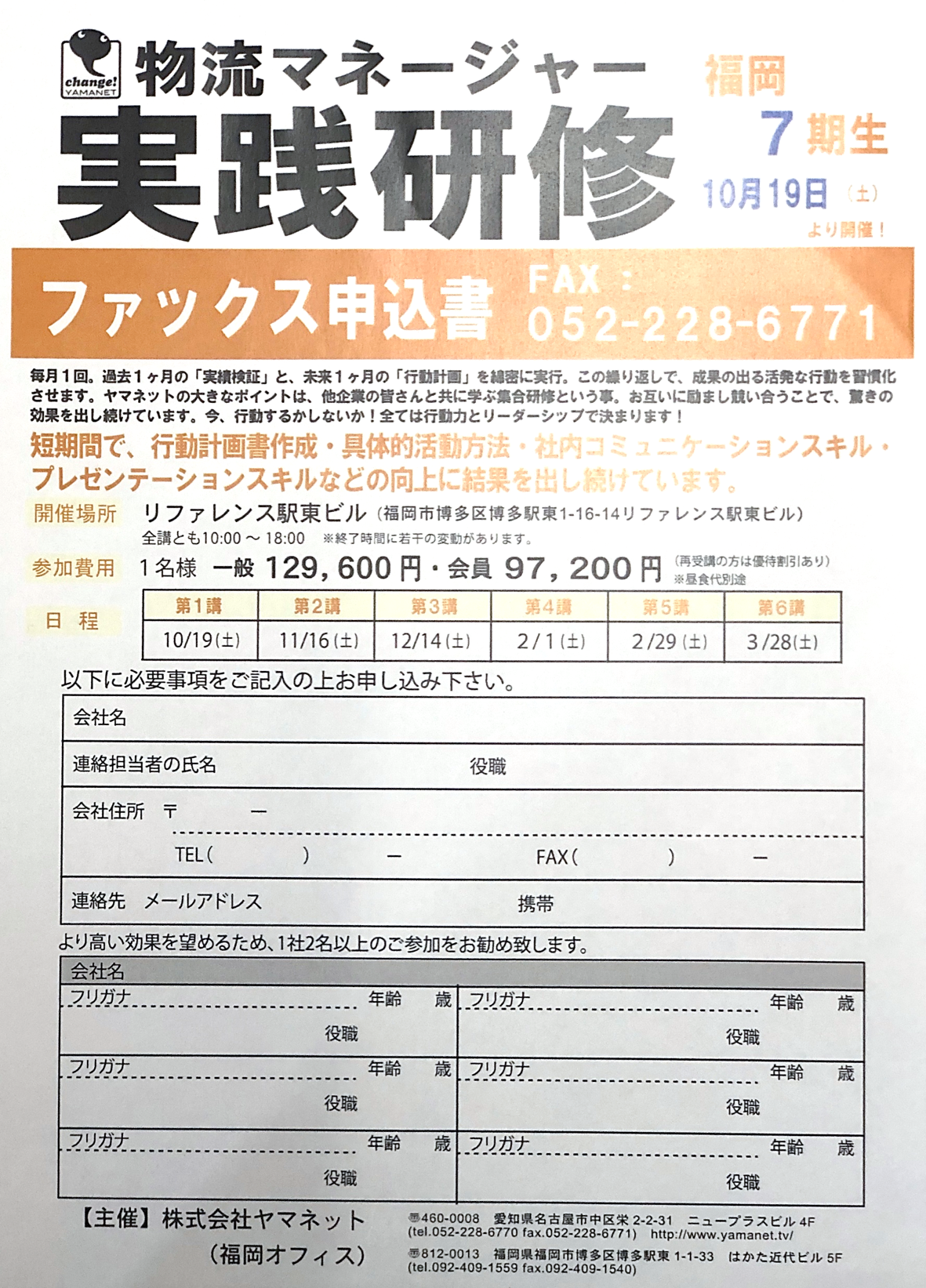 物流マネージャー実践研修は、受講生に多くの気づきやキッカケを与えてくれます。弊社での過去受講生は、平川社長、伊藤部長、佐々木係長、田中係長、大久保が受講しており、7期生にも福岡支店より2名の係長が受講予定です。