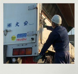 積み降ろし先で評判の良い竹中君は、皆の人気者です!