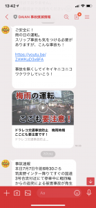 7月より、北九州の営業所から試験的にLINE公式アカウントを活用して事故撲滅に向けた安全への取り組みを実施しております。