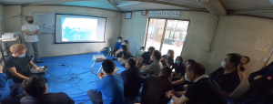 今年もコロナに負けず、ディクリエイトの上西先生に来て頂き、安全セミナーを開催いたしました。コロナの影響でソーシャルディスタンスが取れそうな会場を借りる事はできませんでしたが、検温とマスクと換気を行い、いつもより短い時間で行いました。