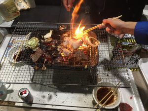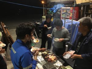 貞末さんを中心として、小さなBBQコンロでお肉を焼いていて、楽しそうにBBQをしておりました。