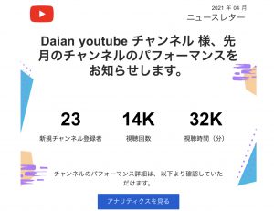 3月度は、毎日動画をアップするという無謀な目標を勝手に立て、内容はどうであれ、無事に毎日動画をアップしてきた結果!チャンネル登録者数が23人増えました!