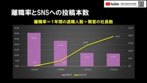 下の図は、SNS投稿を初めてから離職率が下がっている事を示しているグラフです。