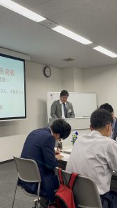 今回の第3講では、本社営業所所属の鉄見君が、全体の活動報告発表を行いました。