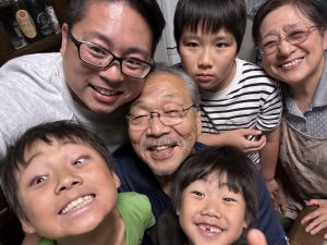 元気な孫たちに囲まれて、会社では見ることのできない、優しい笑顔で写真を撮ることができました。