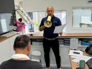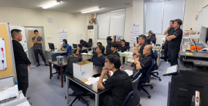 先日の業務終了後に、立花祐介さんがヤマネット物流マネージャー実践研修で学んでいる伝える力(プレゼン)の練習を行っており、事務所にいた数名に協力していただきながら何度も練習を行っていました。
