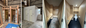 今までは、倉庫裏手の居住スペースを使用しておりましたが、作業環境改善の観点から新たに設置することとなりました。