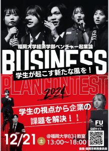 本選は12月21日(土)に福岡大学で開催されます。当日はベンチャー企業論のyoutubeチャンネルでの公開も予定されているので、興味のある方は是非ご覧ください。