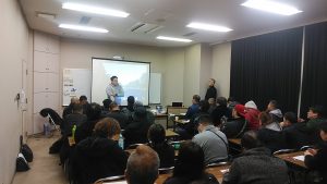 講習会の冒頭では、平川社長より、11月に起きた悲しい事故についての説明と現在の状況。事故を事前に防げなかったことへの反省。そして今後は、事故が起きないよう皆で事故防止に取り組んでいきたい旨の話をされていました。