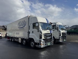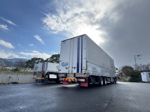 2024年12月、大型トラックが多数納車されました。これは以前からの計画に基づくもので、主に古いトラックの置き換えが目的です。ただ、従業員が増加しているため、この機会に車両の入れ替えを先延ばしにし、増車することにしました。