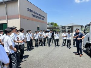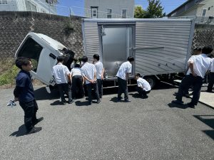 6月26日、福岡県トラック協会主催の「物流出前授業」が希望が丘高校で開催され、当社もトラックの提供を通じて協力しました。