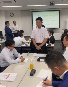 そして、研修のハイライトの一つである3分プレゼンテーションでは、堀川係長が全参加者の前で堂々たる発表を披露しました。 入念な準備と、これまでの学びを凝縮した内容は、参加者や講師陣から非常に高い評価を得ました。自身の考えを明確に伝え、聴衆を引き込むその姿は、まさに日々の努力の賜物です。