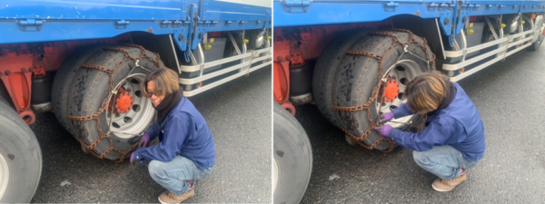 事前の練習が安全確保のカギ となります。現場では、チェーンの種類による装着の違い、テンション調整、外し方まで一つひとつ確認しながら丁寧に取り組む姿が印象的でした。