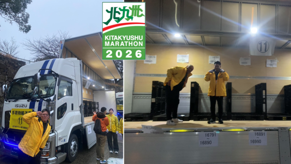 北九州マラソン2026にて弊社トラックを出し、スタート地点で預かったランナーの手荷物を、ゴール地点まで運ぶ業務を担当しました。