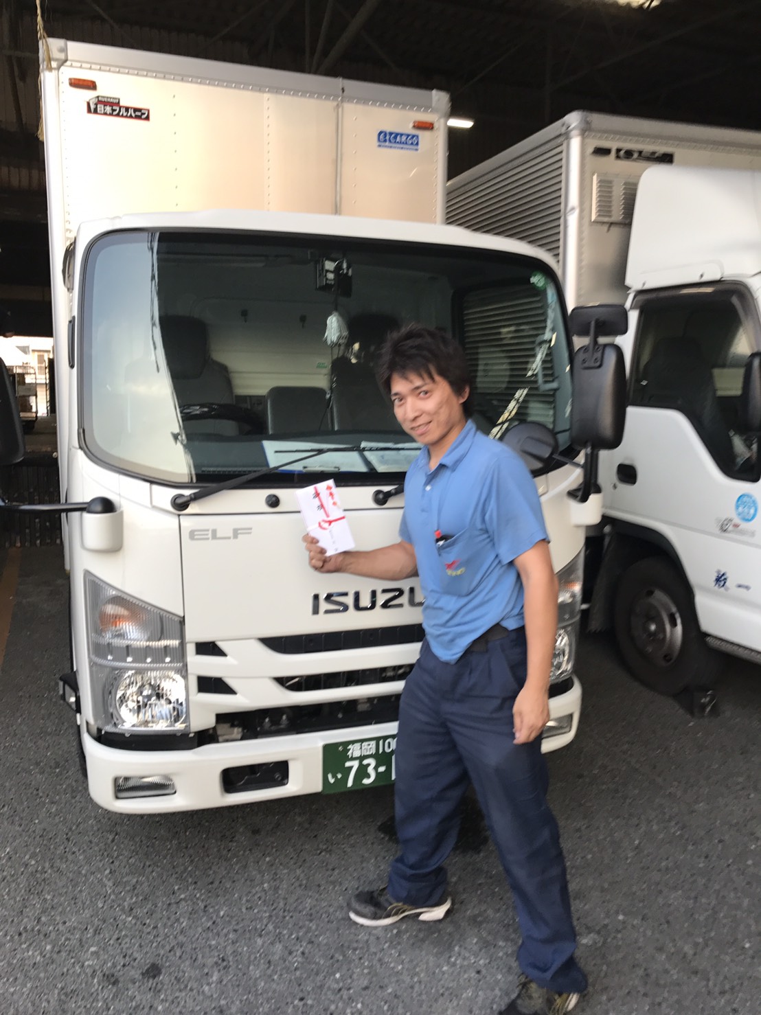 福岡県トラック協会の総会で、安全運転表彰を受ける予定でしたが、どうしても業務上の都合で出席が叶わなかった、古川誠司さんに表彰状と記念品を授与させていただきま... -